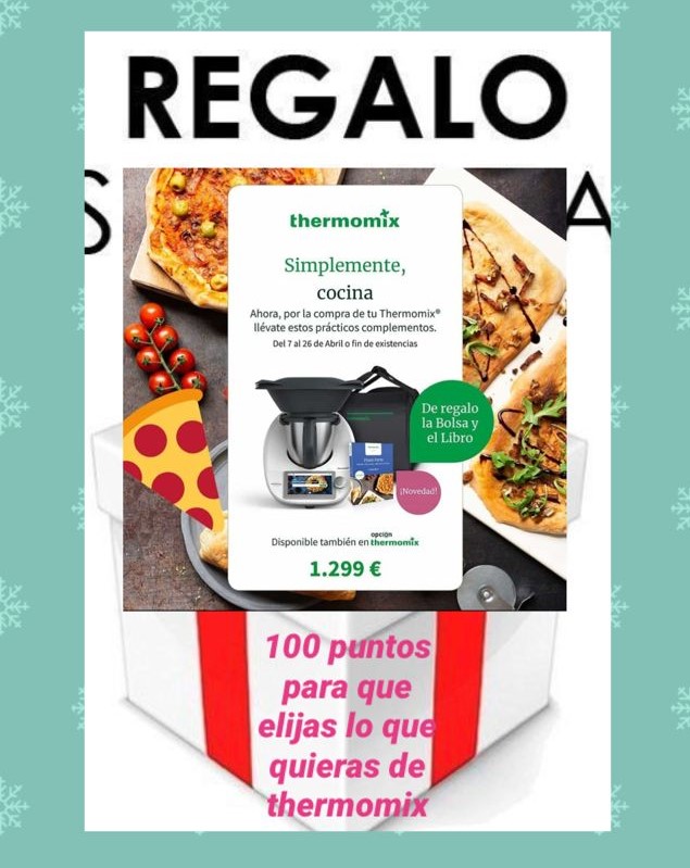 te gustaria poder disfrutar de tu thermomix y ademas poderte llevar los productos de la marca tescoma y thermomix valorados en 100 euros?? solo tienes que darnos una referencia en el dia de hoy y si compran te lo agradecemos con un lote de productos,solo en el dia de hoy!!! tus referencias tienen premios, dare prisa y se uno de los primeros