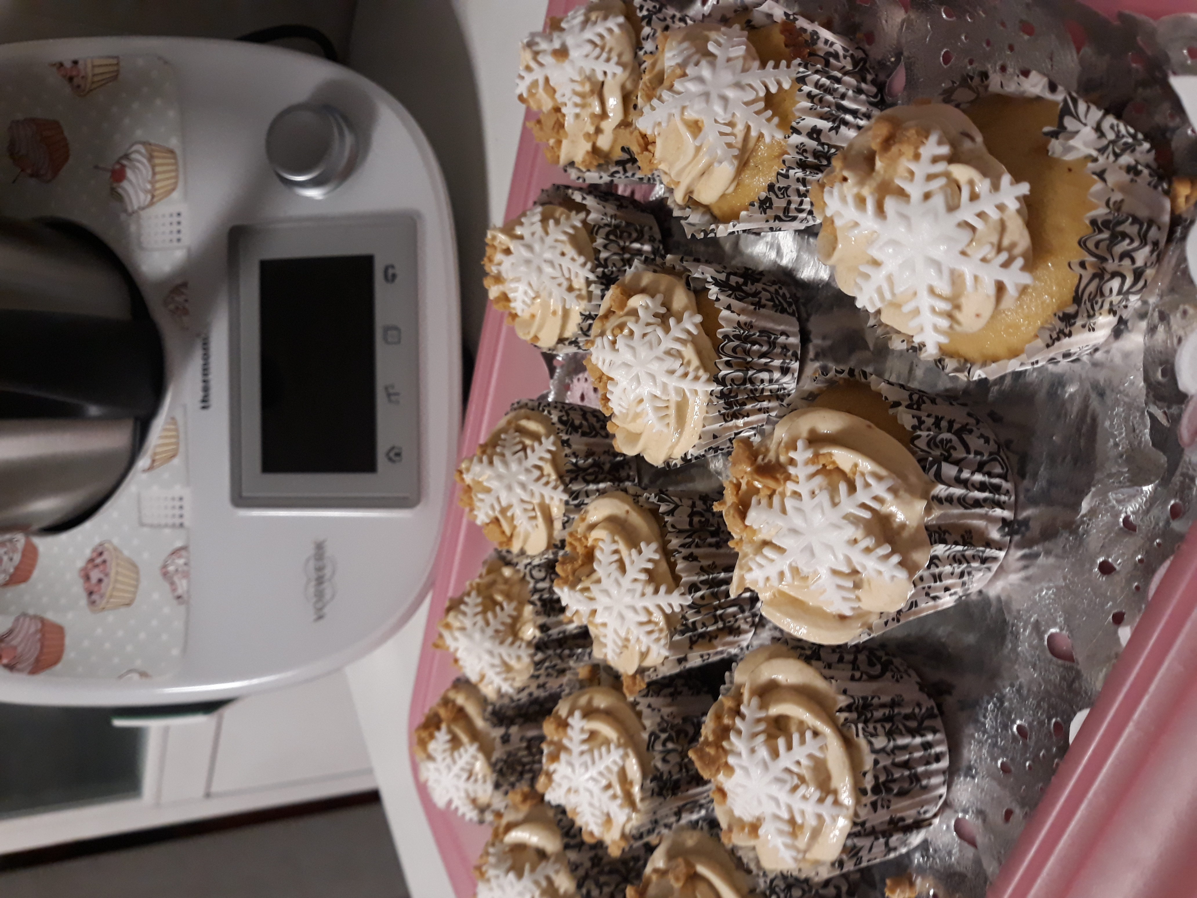 Cupcakes con crema de turrón y copo de nieve